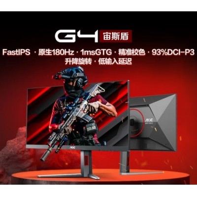 AOC 27英寸 FastIPS 原生180Hz 1ms HDR 95%P3色域 每台校色 升降 电竞电脑显示器 宙斯盾系列 27G4